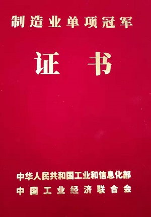2019年11月27日,獲得工業(yè)和信息化部第四批制造業(yè)單項(xiàng)冠軍企業(yè)(產(chǎn)品)