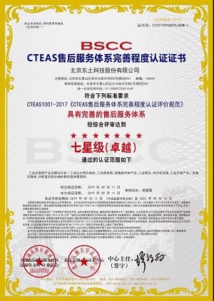 2019年9月11日,在工業(yè)互聯(lián)網(wǎng)產(chǎn)品及解決方案領(lǐng)域,率先獲得CTEAS售后服務(wù)體系完善程度認(rèn)證七星級(jí)卓越證書