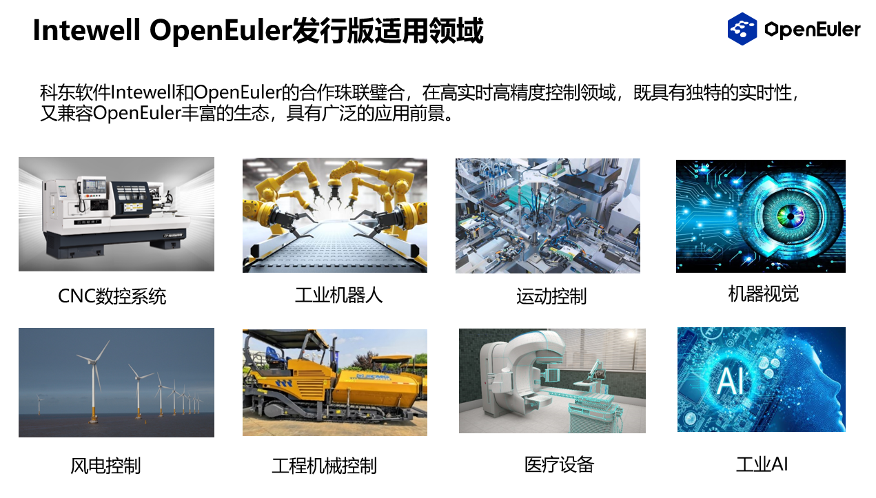 會上,科東介紹了Intewell OpenEuler發(fā)行版Intewell-Euler。Intewell-Euler發(fā)行版是在設(shè)備上可同時運行單個OpenEuler與多個Intewell RTOS實時操作系統(tǒng)的異構(gòu)系統(tǒng),既兼容OpenEuler的豐富生態(tài),同時保證實時業(yè)務(wù)的高實時性和確定性,可靈活分配硬件資源,分區(qū)隔離機制保障系統(tǒng)安全和可靠運行,滿足降本增效、多業(yè)務(wù)融合的需求??茤|Intewell和歐拉的合作珠聯(lián)璧合,在高實時高精度控制領(lǐng)域,既具有獨特的實時性,又具有豐富的生態(tài),具有廣泛的應(yīng)用前景。