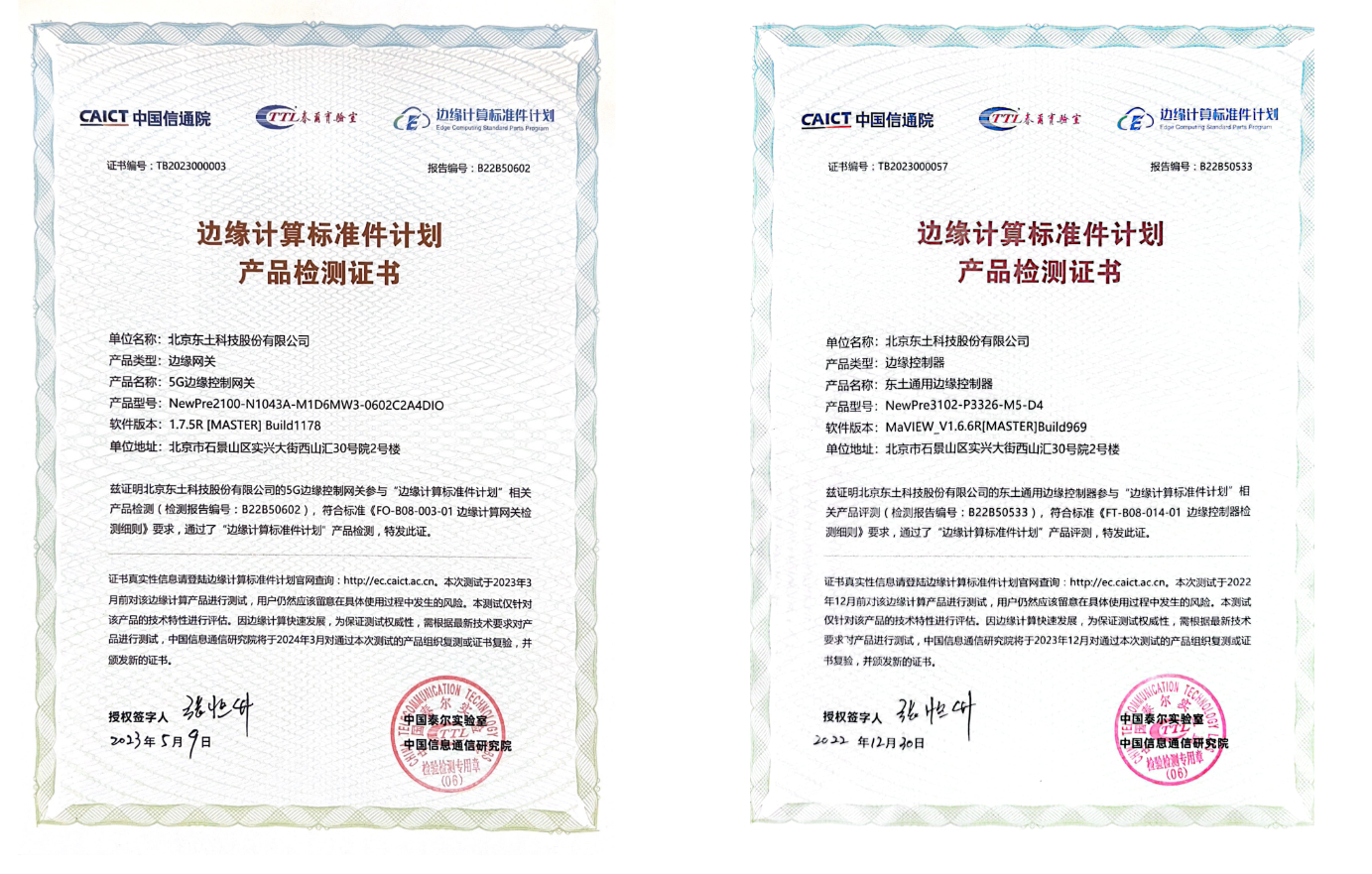 本次論壇還公布了第四批“邊緣計(jì)算標(biāo)準(zhǔn)件計(jì)劃”測試結(jié)果。東土科技5G邊緣控制網(wǎng)關(guān)、通用邊緣控制器憑借產(chǎn)品的高可靠性和穩(wěn)定性,順利通過第四批“邊緣計(jì)算標(biāo)準(zhǔn)件計(jì)劃”測試,并獲得測試認(rèn)證證書。