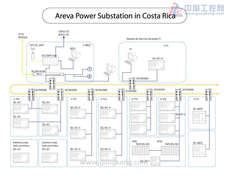 東土公司的SICOM3024P和SICOM3000系列工業(yè)以太網(wǎng)交換機(jī)成功應(yīng)用于Areva在哥斯達(dá)黎加的230/34.5KV變電站項目中。Areva是世界五百強(qiáng)企業(yè)之一,為客戶提供可靠的發(fā)電及輸配電解決方案,是核能工業(yè)的世界領(lǐng)導(dǎo)者。與Areva的成功合作,為東土打開南美電力市場打下了良好的基礎(chǔ)。