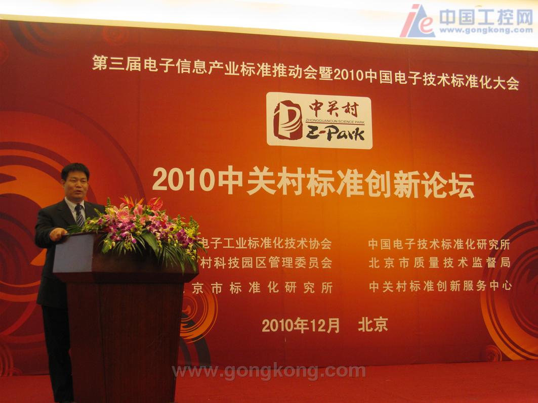 2010年12月4日,由工業(yè)和信息化部、國(guó)家標(biāo)準(zhǔn)化管理委員會(huì)指導(dǎo),中國(guó)電子工業(yè)標(biāo)準(zhǔn)化技術(shù)協(xié)會(huì)、中國(guó)電子技術(shù)標(biāo)準(zhǔn)化研究所、中關(guān)村科技園區(qū)管理委員會(huì)共同主辦的“第三屆電子信息產(chǎn)業(yè)標(biāo)準(zhǔn)推動(dòng)會(huì)暨2010年中國(guó)電子技術(shù)標(biāo)準(zhǔn)大會(huì)”在北京中國(guó)職工之家隆重舉行。工業(yè)和信息化部科技司聞庫司長(zhǎng)到會(huì)做了重要講話,部辦公廳、規(guī)劃司、科技司、電子信息司、軟件服務(wù)業(yè)司等相關(guān)司局領(lǐng)導(dǎo)及各界600多名代表出席了本次大會(huì),東土科技作為中關(guān)村科技園區(qū)唯一代表企業(yè)應(yīng)邀出席了本次會(huì)議。