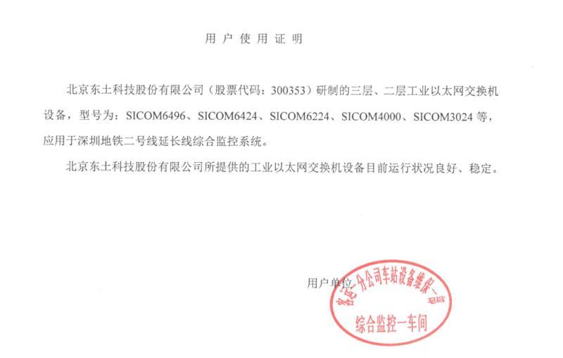 在運營近10年的深圳地鐵2號線中,東土科技提供60多臺三層工業(yè)以太網(wǎng)交換機(jī),以其強(qiáng)大的環(huán)境適應(yīng)能力穩(wěn)定支持地鐵綜合監(jiān)控系統(tǒng)無間斷運行。