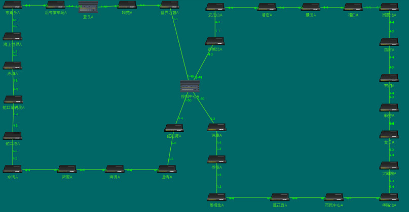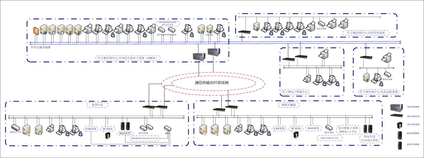 2號線運營中的線路全線設(shè)有29座車站、1個控制中心、1個車輛段,1個停車場和2個主變電所。整體監(jiān)控系統(tǒng)分為中央級和車站級,中央級(控制中心)采用東土科技SICOM6496萬兆級三層路由工業(yè)以太網(wǎng)交換機(jī),車站級(含29座車站、1處車輛段、1處停車場)采用SICOM6424SM千兆三層路由工業(yè)以太網(wǎng)交換機(jī)。這些設(shè)備在各個網(wǎng)絡(luò)節(jié)點均以兩臺結(jié)構(gòu)分別接入通信光纖,組雙冗余環(huán)網(wǎng)(A網(wǎng)和B網(wǎng)),實現(xiàn)互為冗余的無擾動切換。