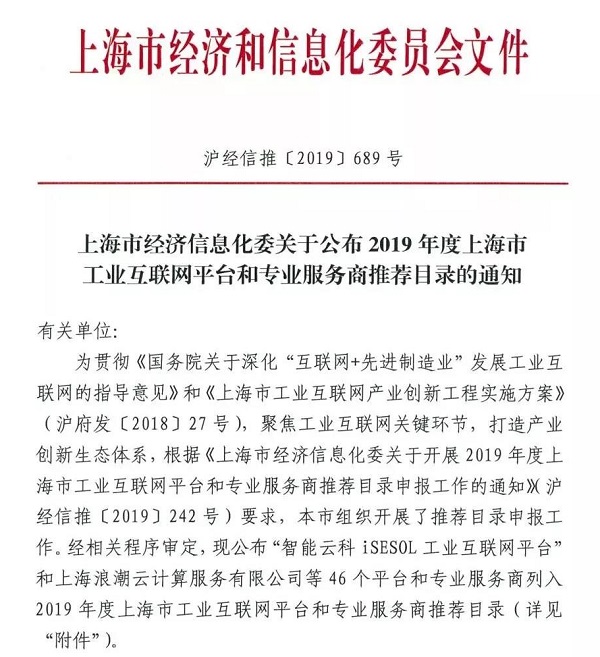 2019年9月,上海市經(jīng)濟(jì)信息化委關(guān)于公布了2019年度上海市工業(yè)互聯(lián)網(wǎng)平臺(tái)和專業(yè)服務(wù)商推薦目錄的通知,共計(jì)46個(gè)平臺(tái)和專業(yè)服務(wù)商列入2019年度上海市工業(yè)互聯(lián)網(wǎng)平臺(tái)和專業(yè)服務(wù)商推薦目錄。