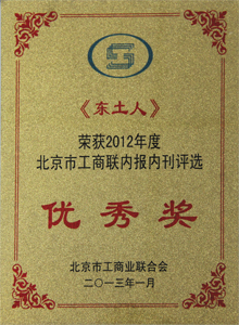 北京市工商業(yè)聯(lián)合會(huì)“2012年度優(yōu)秀內(nèi)報(bào)內(nèi)刊表彰會(huì)”于2013年1月29日在京舉行。全國工商聯(lián)、北京市委宣傳部、統(tǒng)戰(zhàn)部、市工商聯(lián)等領(lǐng)導(dǎo)及參與優(yōu)秀內(nèi)報(bào)內(nèi)刊評選的200多家單位的代表出席會(huì)議。經(jīng)組委會(huì)評選,《東土人》內(nèi)報(bào)榮膺“2012年度北京市工商聯(lián)內(nèi)報(bào)內(nèi)刊評選優(yōu)秀獎(jiǎng)”。