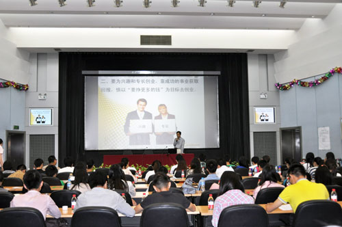 講座上,李總結(jié)合自身的創(chuàng)業(yè)經(jīng)歷,分享了自主創(chuàng)業(yè)過程中的感悟,建議創(chuàng)業(yè)者要從創(chuàng)業(yè)動(dòng)機(jī)、創(chuàng)業(yè)領(lǐng)域選擇、創(chuàng)業(yè)計(jì)劃、風(fēng)險(xiǎn)控制、團(tuán)隊(duì)意識(shí)和創(chuàng)業(yè)心態(tài)等方面進(jìn)行充分地準(zhǔn)備,強(qiáng)調(diào)了創(chuàng)業(yè)者應(yīng)具備的基本素質(zhì),為同學(xué)們的創(chuàng)業(yè)之路提供了指導(dǎo)性意見。隨后,李總就學(xué)生關(guān)心的話題進(jìn)行了互動(dòng),深入解答學(xué)生提出的創(chuàng)業(yè)問題,并高度贊揚(yáng)了學(xué)生們的創(chuàng)業(yè)激情和創(chuàng)業(yè)夢(mèng)想。精彩的講座,深入的分享,受到了學(xué)生的熱烈歡迎,講座持續(xù)1個(gè)半小時(shí),結(jié)束時(shí)同學(xué)們?nèi)愿幸猹q未盡,紛紛與李總進(jìn)行場(chǎng)下交流和咨詢。