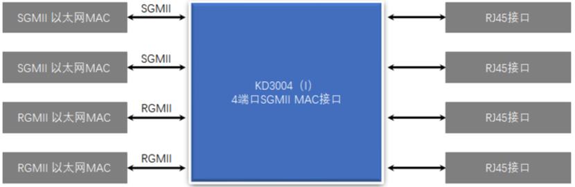 在QSGMII應用模式中,KD3004是QSGMII MAC電口收發(fā)器。