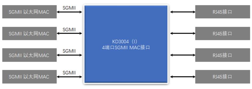 在SGMII應用模式下,KD3004是一個四端口SGMII MAC電口收發(fā)器。