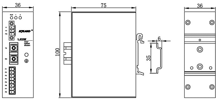 | 機械結(jié)構 | 外殼 金屬材質(zhì) 散熱方式 自然冷卻,無風扇 防護等級 IP30 尺寸 36mm×100mm×75mm(W×H×D) 重量 0.3Kg 安裝方式 DIN卡軌式 |