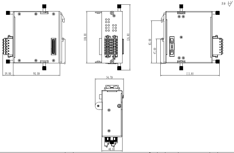 | 機(jī)械結(jié)構(gòu) | 機(jī)械結(jié)構(gòu) 鋁質(zhì)外殼 防護(hù)等級(jí) IP30 尺寸 40mm x 100mm x 90mm (W x H x D) 整機(jī)重量 500g 安裝方式 導(dǎo)軌安裝 |