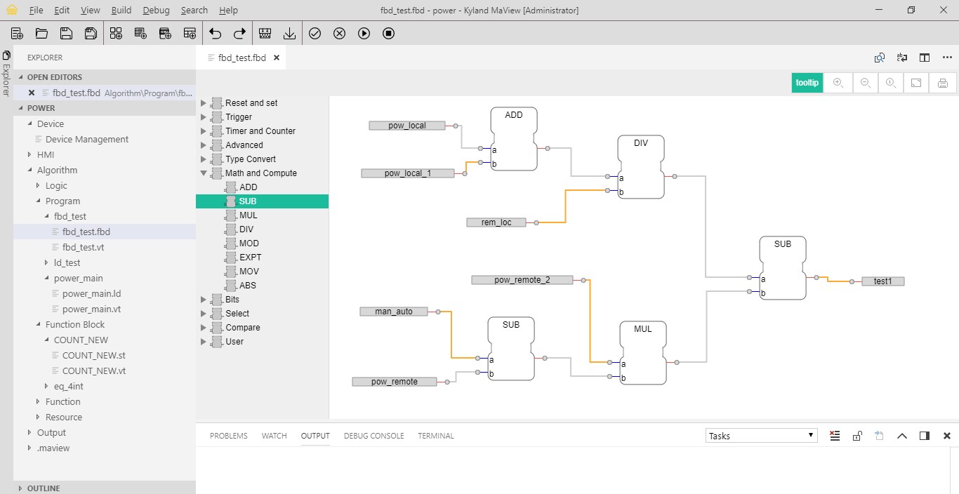 | 編譯調(diào)試器 | -編譯 支持全工程編譯 支持按照選定的控制器編譯及HMI編譯 編譯時(shí)檢查組態(tài)正確性,并給出錯(cuò)誤提示定位 -下裝 支持全工程下裝和增量下裝 支持選擇目標(biāo)控制器和HMI站點(diǎn)下裝算法、畫(huà)面 -調(diào)試 支持ST、LD、FBD斷點(diǎn)調(diào)試 算法頁(yè)面顯示變量實(shí)時(shí)值 |