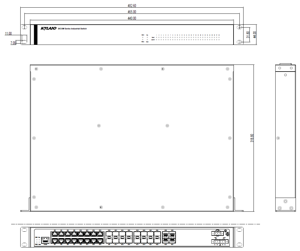 | 管理與維護(hù) | 支持命令行, WEB 管理方式 支持SNMPv1/v2c/v3,可通過Kyvision 集中管理 支持軟件升級(jí) 支持配置文件上傳下載 支持自動(dòng)下載配置 支持電源告警, 溫度告警,IP/MAC 沖突告警, 內(nèi)存/CPU 利用率告警, 端口告警,環(huán)告警, 端口流量告警, CRC 及丟包率告警, SFP 接口接收光功率告警和發(fā)送光功率告警 支持UDLD 連接監(jiān)測(cè) 支持LLDP 支持RMON 支持Syslog 支持DDM (SFP 接口) 支持端口鏡像 |